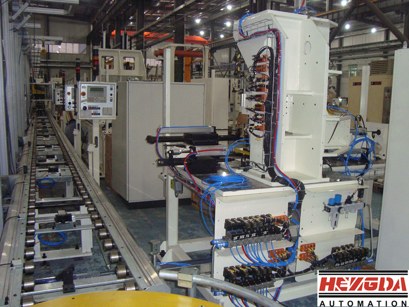 隨著汽車工業的發展,發動機裝配線 的自動化程度越來越高,發動機裝配線主要由活塞連桿分裝線、缸蓋分裝線、總成裝配線組成。具體的設備大致包括:摩擦輸送線、托盤、打號機、激光標簽打印機、翻轉機、缸孔噴油裝置、活塞插入輔助裝置、曲軸分組號攝像識別裝置、主軸瓦選配裝置、氣門插入翻轉臺、氣門拍打裝置、活塞銷壓裝機、潤滑油噴嘴壓裝及檢測機、氣門油封壓裝機、缸蓋水管接頭壓裝機、火花塞導管壓裝機、主軸承蓋螺栓擰緊機、連桿螺栓擰緊機、缸蓋螺栓擰緊機、凸輪軸蓋螺栓擰緊機、正時鏈蓋擰緊機、油底殼擰緊機、曲軸皮帶輪螺栓擰緊機、主軸承蓋螺栓松開機、連桿螺栓旋松機、總線控制系統與信息管理系統、裝配線工具、量檢具、通用料架、智能料架、冷試臺架、機械挺柱選配裝置、氣門鎖夾壓裝機、涂膠及機油加注設備、泄漏檢測設備、曲軸端隙及扭矩測量裝置、曲軸回轉力矩檢測+油道試漏、MPI試漏機、缸蓋泄漏試驗機、長缸油路試漏機、長缸水路試漏機。