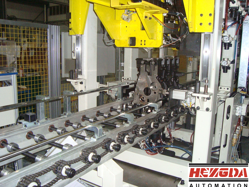 隨著汽車工業的發展,發動機裝配線 的自動化程度越來越高,發動機裝配線主要由活塞連桿分裝線、缸蓋分裝線、總成裝配線組成。具體的設備大致包括:摩擦輸送線、托盤、打號機、激光標簽打印機、翻轉機、缸孔噴油裝置、活塞插入輔助裝置、曲軸分組號攝像識別裝置、主軸瓦選配裝置、氣門插入翻轉臺、氣門拍打裝置、活塞銷壓裝機、潤滑油噴嘴壓裝及檢測機、氣門油封壓裝機、缸蓋水管接頭壓裝機、火花塞導管壓裝機、主軸承蓋螺栓擰緊機、連桿螺栓擰緊機、缸蓋螺栓擰緊機、凸輪軸蓋螺栓擰緊機、正時鏈蓋擰緊機、油底殼擰緊機、曲軸皮帶輪螺栓擰緊機、主軸承蓋螺栓松開機、連桿螺栓旋松機、總線控制系統與信息管理系統、裝配線工具、量檢具、通用料架、智能料架、冷試臺架、機械挺柱選配裝置、氣門鎖夾壓裝機、涂膠及機油加注設備、泄漏檢測設備、曲軸端隙及扭矩測量裝置、曲軸回轉力矩檢測+油道試漏、MPI試漏機、缸蓋泄漏試驗機、長缸油路試漏機、長缸水路試漏機。
