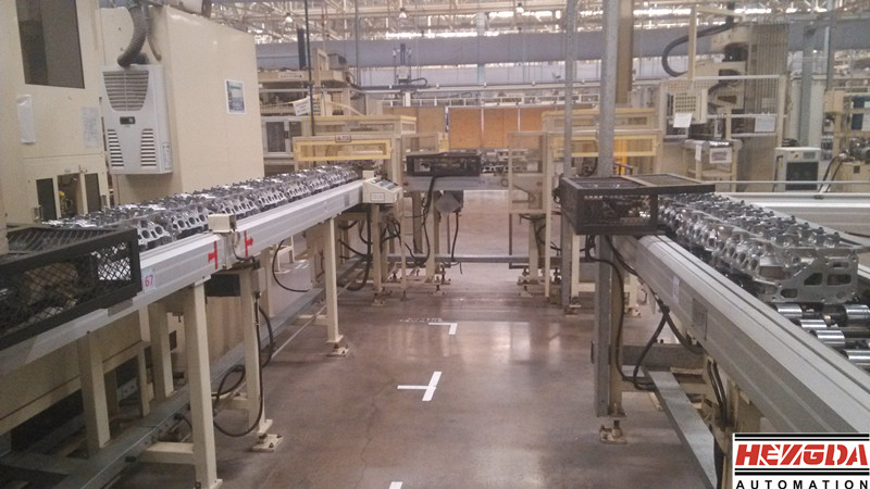 隨著汽車工業的發展,發動機裝配線 的自動化程度越來越高,發動機裝配線主要由活塞連桿分裝線、缸蓋分裝線、總成裝配線組成。具體的設備大致包括:摩擦輸送線、托盤、打號機、激光標簽打印機、翻轉機、缸孔噴油裝置、活塞插入輔助裝置、曲軸分組號攝像識別裝置、主軸瓦選配裝置、氣門插入翻轉臺、氣門拍打裝置、活塞銷壓裝機、潤滑油噴嘴壓裝及檢測機、氣門油封壓裝機、缸蓋水管接頭壓裝機、火花塞導管壓裝機、主軸承蓋螺栓擰緊機、連桿螺栓擰緊機、缸蓋螺栓擰緊機、凸輪軸蓋螺栓擰緊機、正時鏈蓋擰緊機、油底殼擰緊機、曲軸皮帶輪螺栓擰緊機、主軸承蓋螺栓松開機、連桿螺栓旋松機、總線控制系統與信息管理系統、裝配線工具、量檢具、通用料架、智能料架、冷試臺架、機械挺柱選配裝置、氣門鎖夾壓裝機、涂膠及機油加注設備、泄漏檢測設備、曲軸端隙及扭矩測量裝置、曲軸回轉力矩檢測+油道試漏、MPI試漏機、缸蓋泄漏試驗機、長缸油路試漏機、長缸水路試漏機。