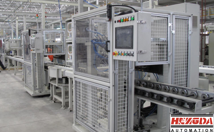 隨著汽車工業的發展,發動機裝配線 的自動化程度越來越高,發動機裝配線主要由活塞連桿分裝線、缸蓋分裝線、總成裝配線組成。具體的設備大致包括:摩擦輸送線、托盤、打號機、激光標簽打印機、翻轉機、缸孔噴油裝置、活塞插入輔助裝置、曲軸分組號攝像識別裝置、主軸瓦選配裝置、氣門插入翻轉臺、氣門拍打裝置、活塞銷壓裝機、潤滑油噴嘴壓裝及檢測機、氣門油封壓裝機、缸蓋水管接頭壓裝機、火花塞導管壓裝機、主軸承蓋螺栓擰緊機、連桿螺栓擰緊機、缸蓋螺栓擰緊機、凸輪軸蓋螺栓擰緊機、正時鏈蓋擰緊機、油底殼擰緊機、曲軸皮帶輪螺栓擰緊機、主軸承蓋螺栓松開機、連桿螺栓旋松機、總線控制系統與信息管理系統、裝配線工具、量檢具、通用料架、智能料架、冷試臺架、機械挺柱選配裝置、氣門鎖夾壓裝機、涂膠及機油加注設備、泄漏檢測設備、曲軸端隙及扭矩測量裝置、曲軸回轉力矩檢測+油道試漏、MPI試漏機、缸蓋泄漏試驗機、長缸油路試漏機、長缸水路試漏機。