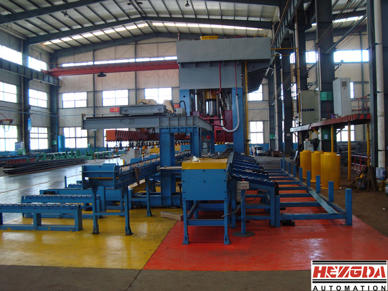 汽車縱梁壓制液壓機主要適用于大型汽車底梁的壓制成型、沖裁、落料工藝,也可以從事其他塑料材料的壓制、彎曲、成型等工業。本系列液壓機主要組成部分包括:液壓機主機、移動工作臺、液壓傳動系統、潤滑系統、電氣控制系統、及其他輔助裝置等,有輔機自動上下料裝置進行配合工作,實現車架縱梁的自動成型工藝。