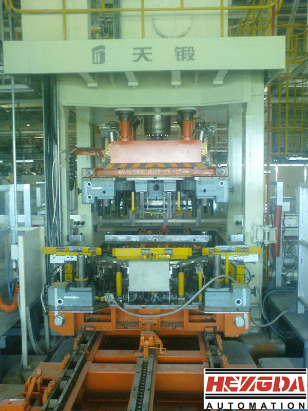 ①一臺機器帶2個移動工作臺的結構,2個移動工作臺左右移動,客戶可以在壓機的前后方向安裝上料、下料裝置。