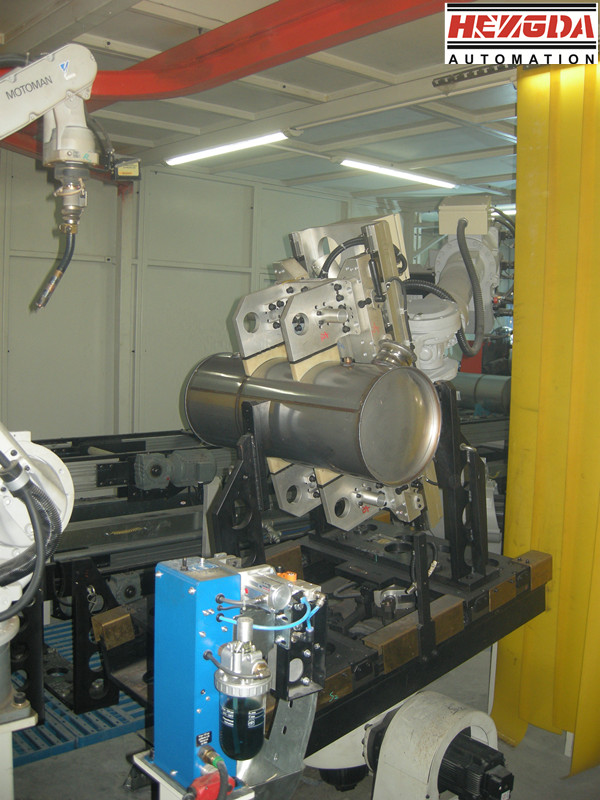 該機器人焊接工作站主要用于煤機結構件的自動焊接,采用頭尾架式單軸變位機+六軸聯動機器人雙工位布局,機器人安裝于雙工位中間。為方便進行多種規格工件焊接及參數設置,控制系統采用三菱工業觸摸屏方式進行控制和操作,使整套設備具有更大的柔性及靈活性,并可有效提高生產效率。焊接工藝采用熔化極氣體保護焊接工藝,焊絲直徑規格:,桶裝焊絲配置,電流調節范圍,焊接參數可調用預置和存儲的數據。機器人系統選用日本機器人系統,型號,配高性能機器人控制器,配套焊縫起始點尋位功 能和電弧跟蹤功能,實現擺動焊接,焊接效率高,焊縫質量穩定可靠。焊接系統:;選用日本的機器人專用逆變焊接電源,型號。焊槍選用日本專用機器人水冷焊槍。